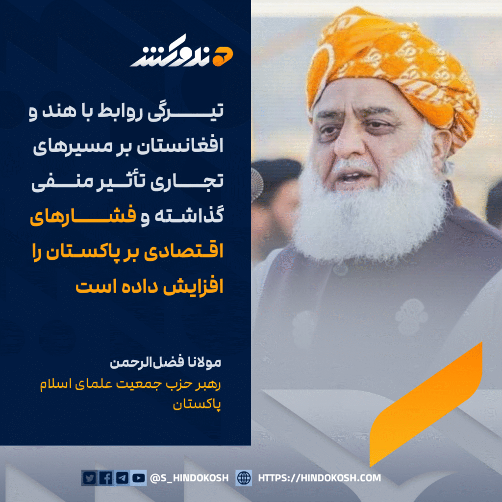 مولانا فضلالرحمن، رهبر حزب جمعیت علمای اسلام پاکستان: تیرگی روابط با هند و افغانستان بر مسیرهای تجاری تأثیر منفی گذاشته و فشارهای اقتصادی بر پاکستان را افزایش داده است