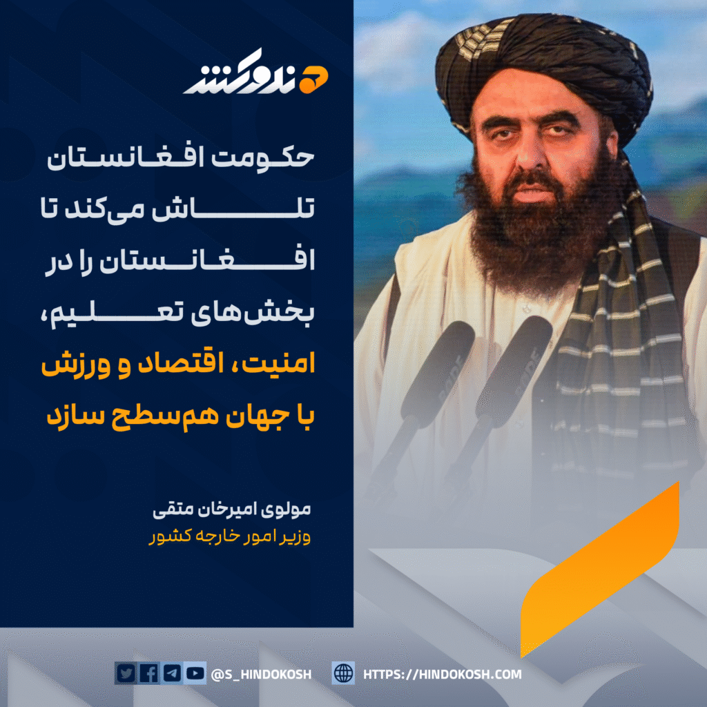 مولوی امیرخان متقی، وزیر امور خارجه کشور: حکومت افغانستان تلاش میکند تا افغانستان را در بخشهای تعلیم، امنیت، اقتصاد و ورزش با جهان همسطح سازد