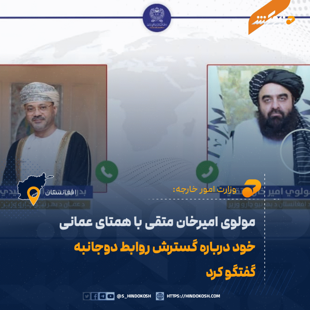 مولوی امیرخان متقی، وزیر امور خارجه و بدر بن حمد البوسعیدی، وزیر امور خارجه عمان، به صورت تیلفنی با یکدیگر گفتگو کردند.
