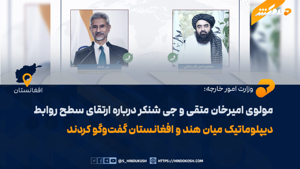 وزارت امور خارجه میگوید که مولوی امیرخان متقی، وزیر امور خارجه، و جی شنکر، وزیر امور خارجه هند، در یک تماس تیلیفونی درباره تقویت روابط دوجانبه میان هند و افغانستان، تجارت، و ارتقای سطح روابط دیپلوماتیک گفتوگو کردهاند.