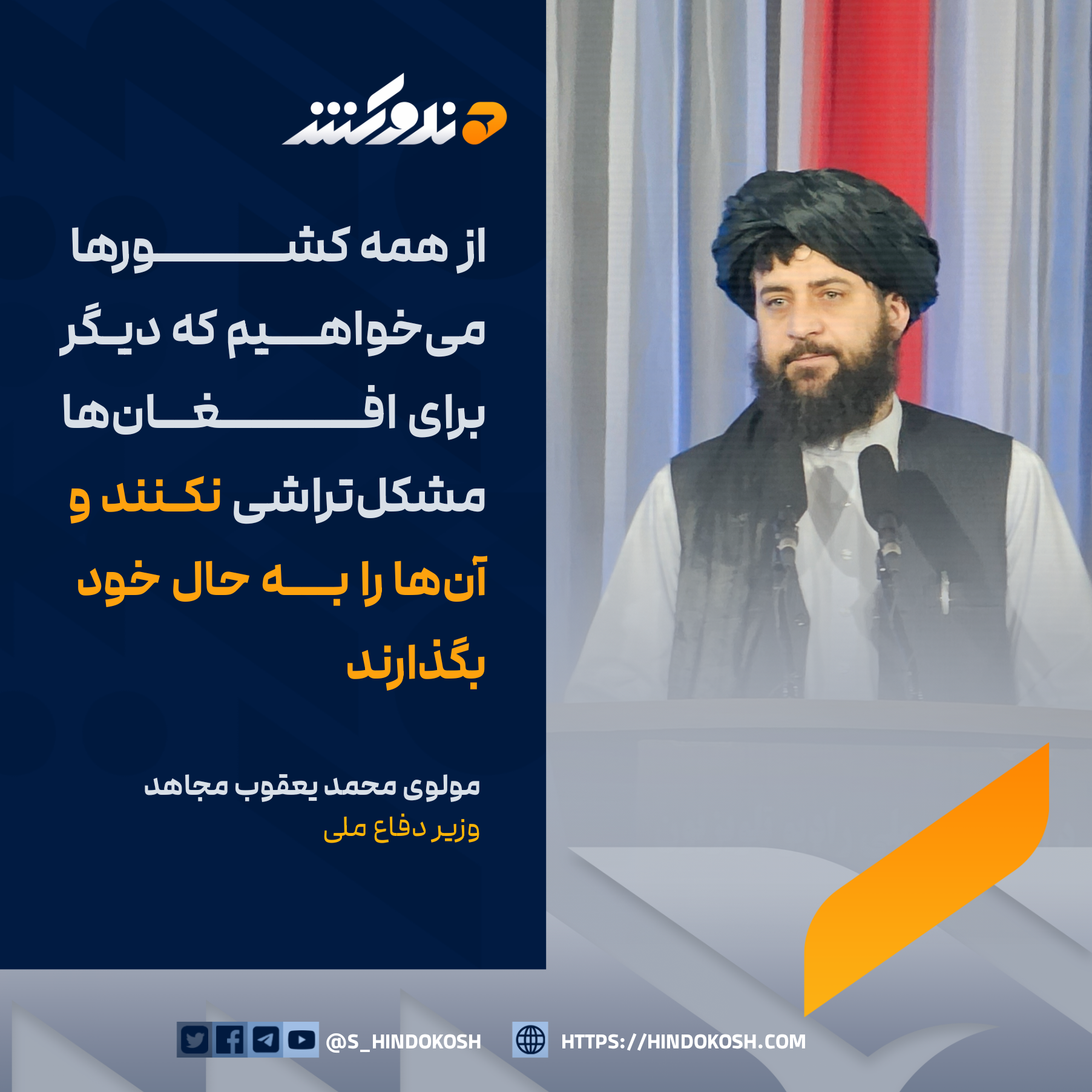 محمد یعقوب مجاهد، وزیر دفاع ملی، در مراسم تجلیل از سی و هفتمین سالروز خروج نیروهای شوروی (۲۶ دلو)، از تمامی کشورها خواست که دیگر برای افغانها چالش ایجاد نکنند و اجازه دهند آنها به امور خود بپردازند.