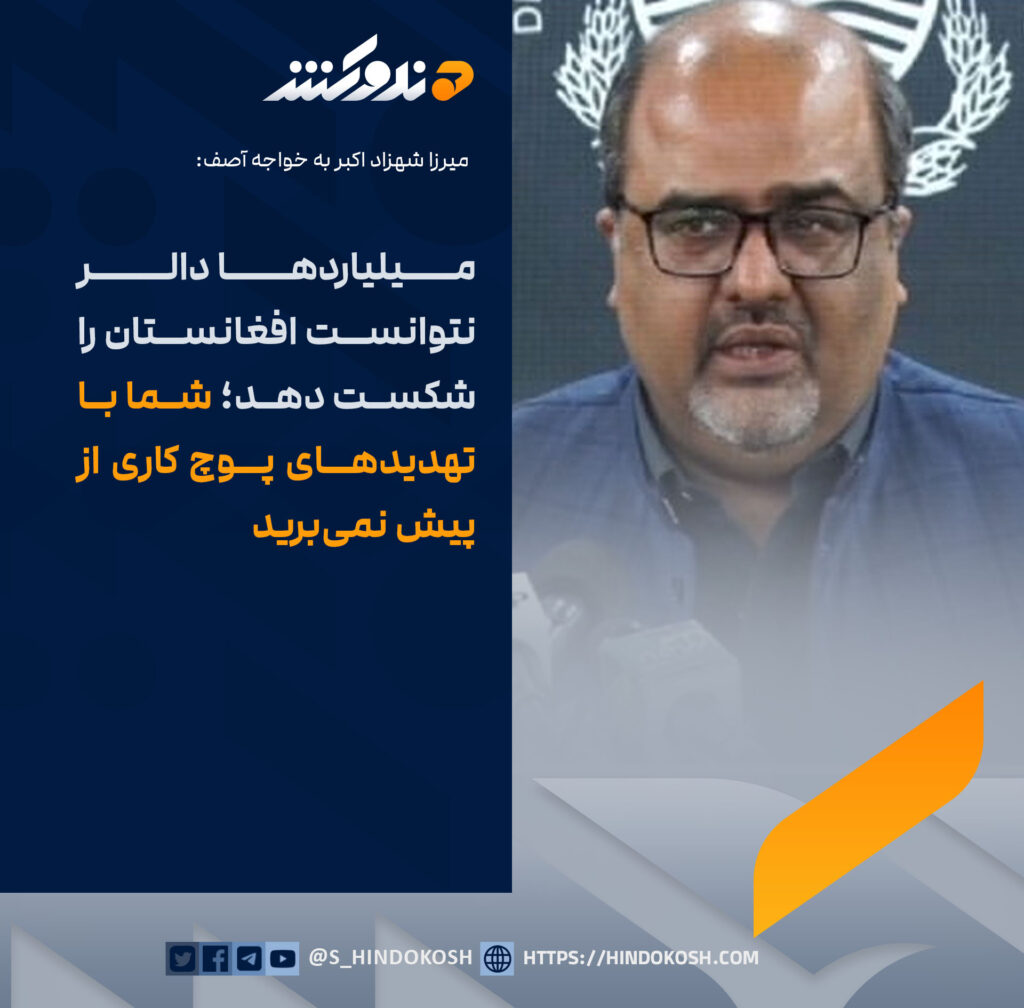 میرزا شهزاد اکبر به خواجه آصف: میلیاردها دالر نتوانست افغانستان را شکست دهد؛ شما با تهدیدهای پوچ کاری از پیش نمیبرید