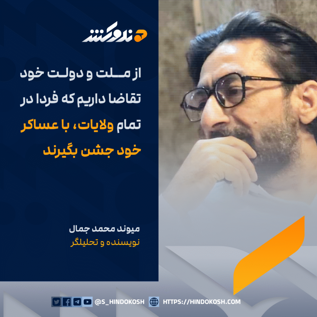 میوند محمد جمال، نویسنده و تحلیلگر: از ملت و دولت خود تقاضا داریم که فردا در تمام ولایات، با عساکر خود جشن بگیرند