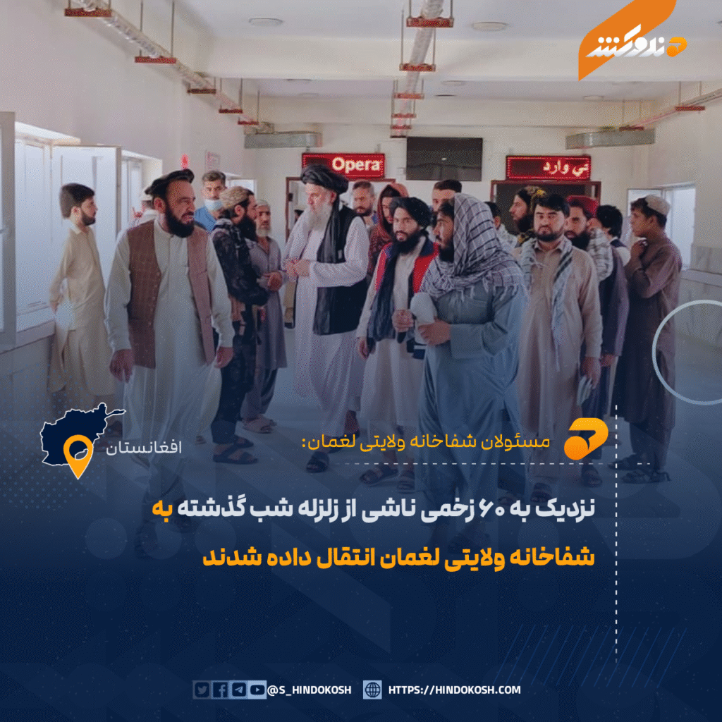 نزدیک به ۶۰ زخمی ناشی از زلزله شب گذشته به شفاخانه ولایتی لغمان انتقال داده شدند