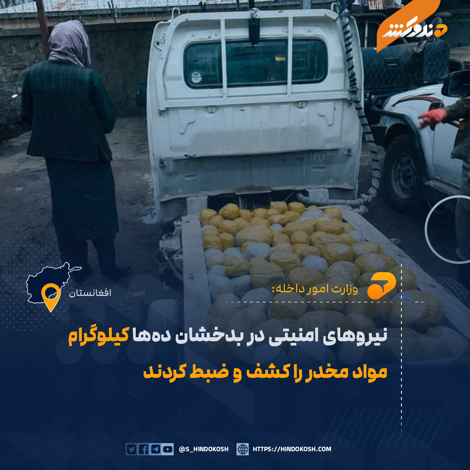 وزارت امور داخله میگوید که پولیس ولسوالی کشم ولایت بدخشان در منطقه «مادابه» این ولسوالی، دهها کیلوگرام مواد مخدر را کشف و ضبط کردهاند.