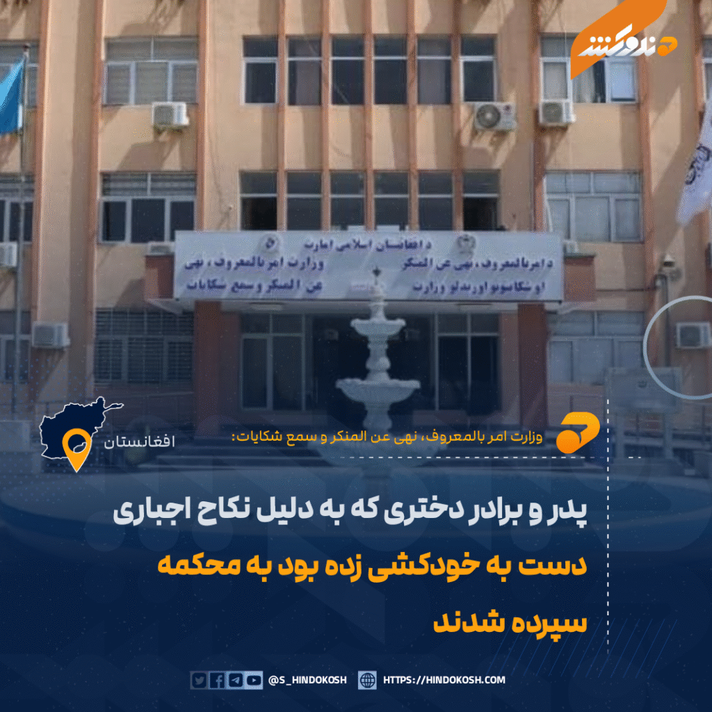 مولوی سیفالاسلام خیبر، سخنگوی وزارت امر بالمعروف، نهی عن المنکر و سمع شکایات میگوید که پدر و برادر بزرگ دختری به نام فرشته در زابل که به دلیل نکاح اجباری خودکشی کرده بود، به محکمه سپرده شدهاند.