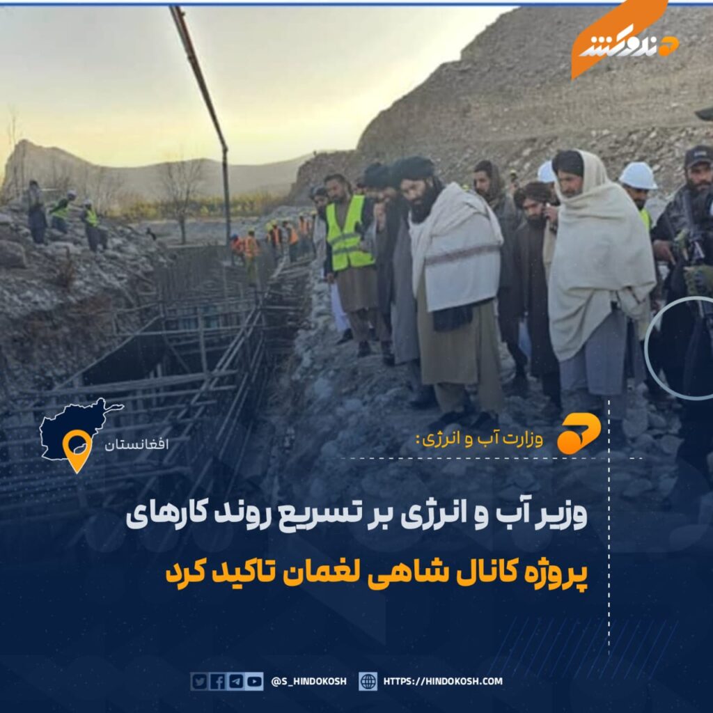 ملا محمد یونس اخندزاده، وزیر آب و انرژی، از جریان کارهای جاری پروژه کانال شاهی لغمان بازدید کرده و بر تسریع امور و کیفیت بهتر پروژه مذکور تاکید نموده است.