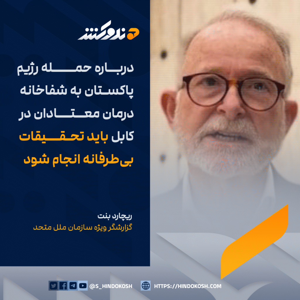 گزارشگر ویژه سازمان ملل متحد، ریچارد بنت: درباره حمله رژیم پاکستان به شفاخانه درمان معتادان در کابل باید تحقیقات بیطرفانه انجام شود