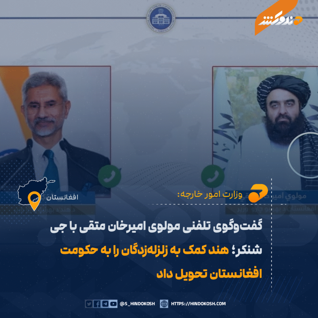 مولوی امیرخان متقی، وزیر امور خارجه افغانستان، با همتای هندی خود، جی شنکر، گفت‌وگوی تلفنی انجام داد.