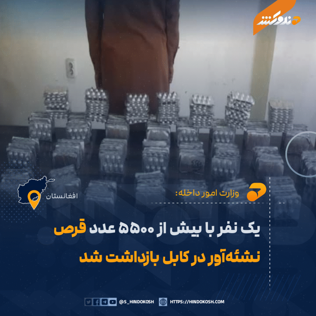 You are at:Home»اخبار»یک نفر با بیش از ۵۵۰۰ عدد قرص نشئه‌آور در کابل بازداشت شد