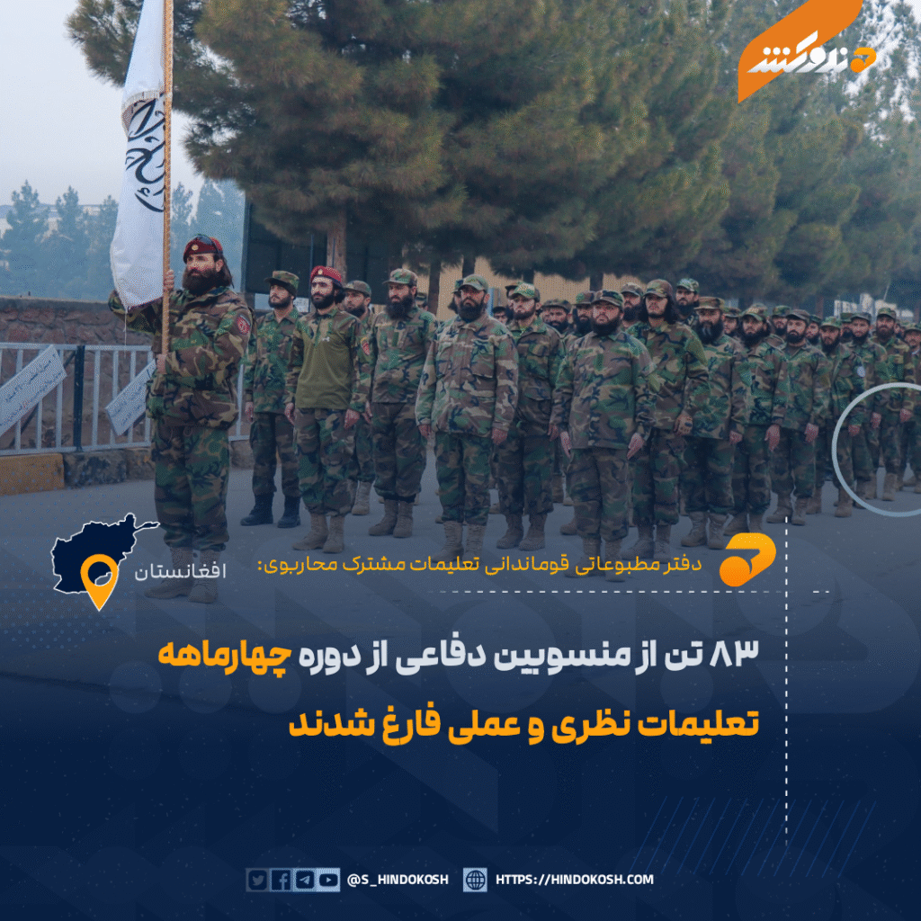 دفتر مطبوعاتی قوماندانی تعلیمات مشترک محاربوی اعلام کرده است که ۸۳ تن از منسوبین وزارت دفاع ملی، پس از تکمیل دوره چهارماهه تعلیمات نظری و عملی در قوماندانی تعلیمات مشترک محاربوی عبدالله بن مسعود رضی‌الله‌عنه، امروز طی مراسمی فارغ شدند.